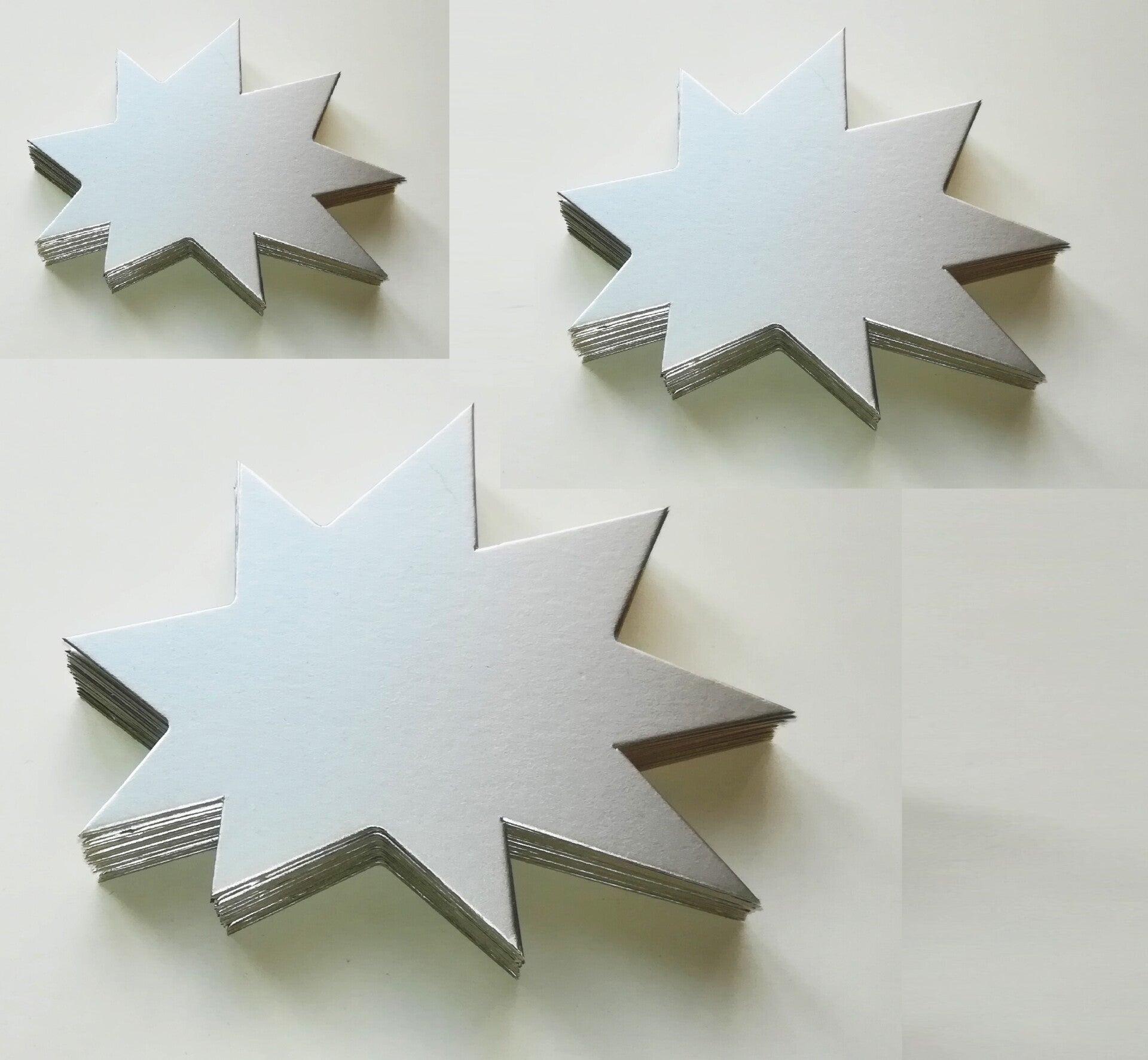 60 Sterne in 3 Größen Preisschilder aus Plakatkarton silberfarbig