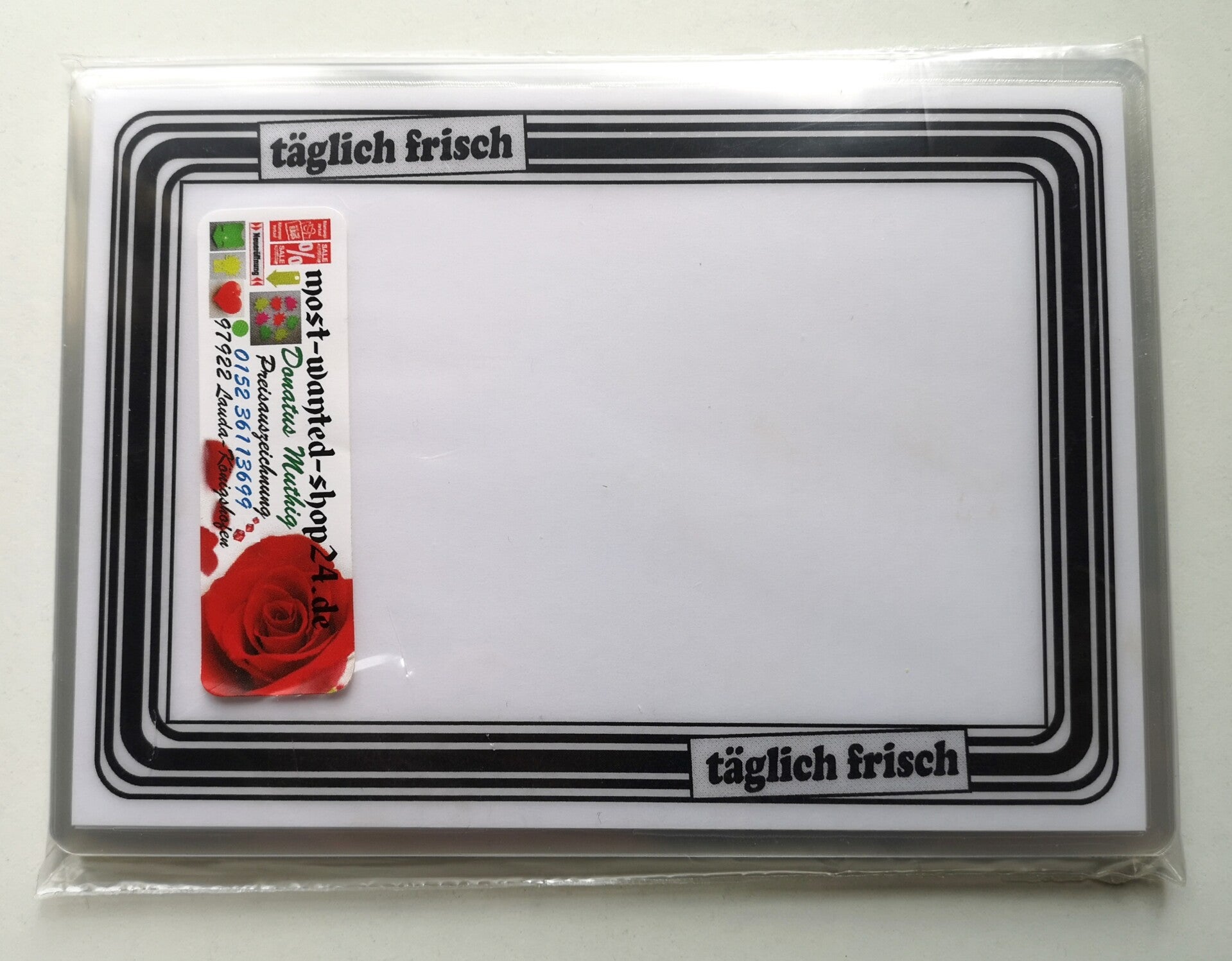 10 laminierte Preisschilder in weiß - Aufdruck: "täglich frisch" mit Rand